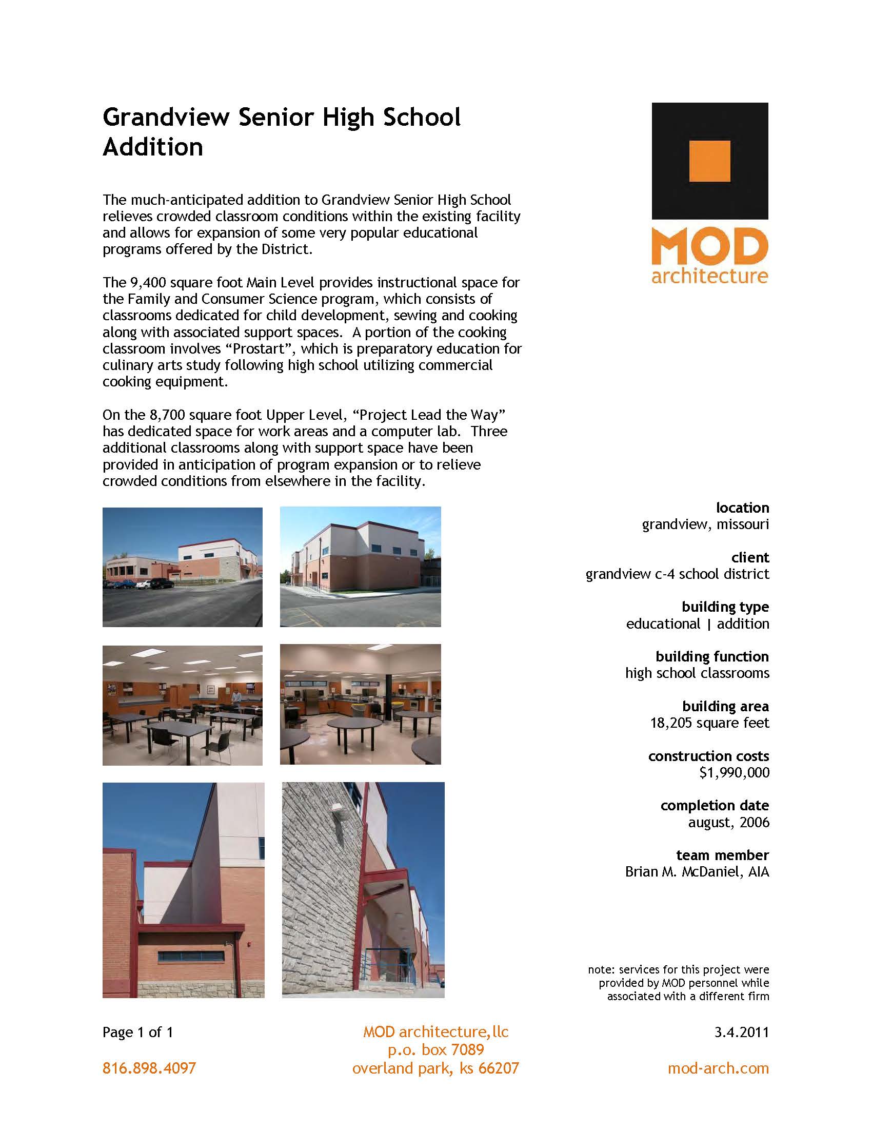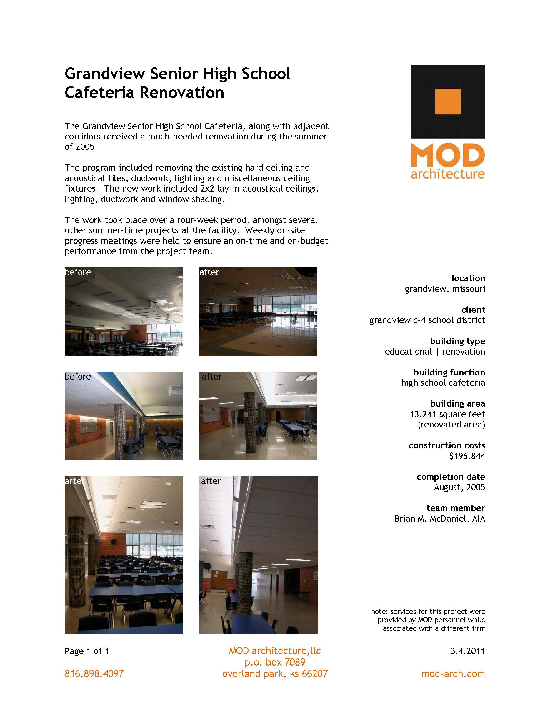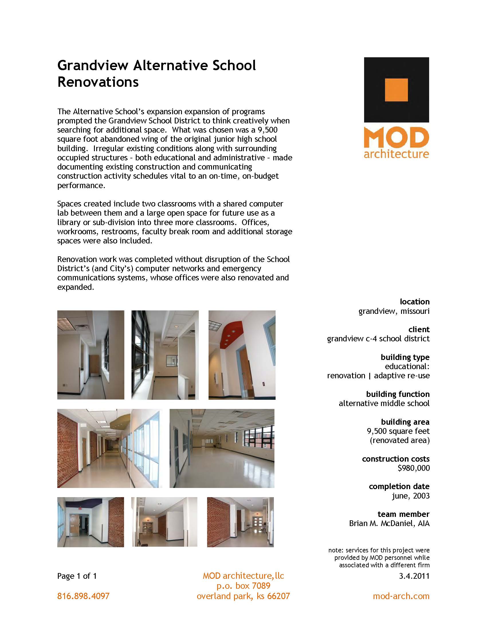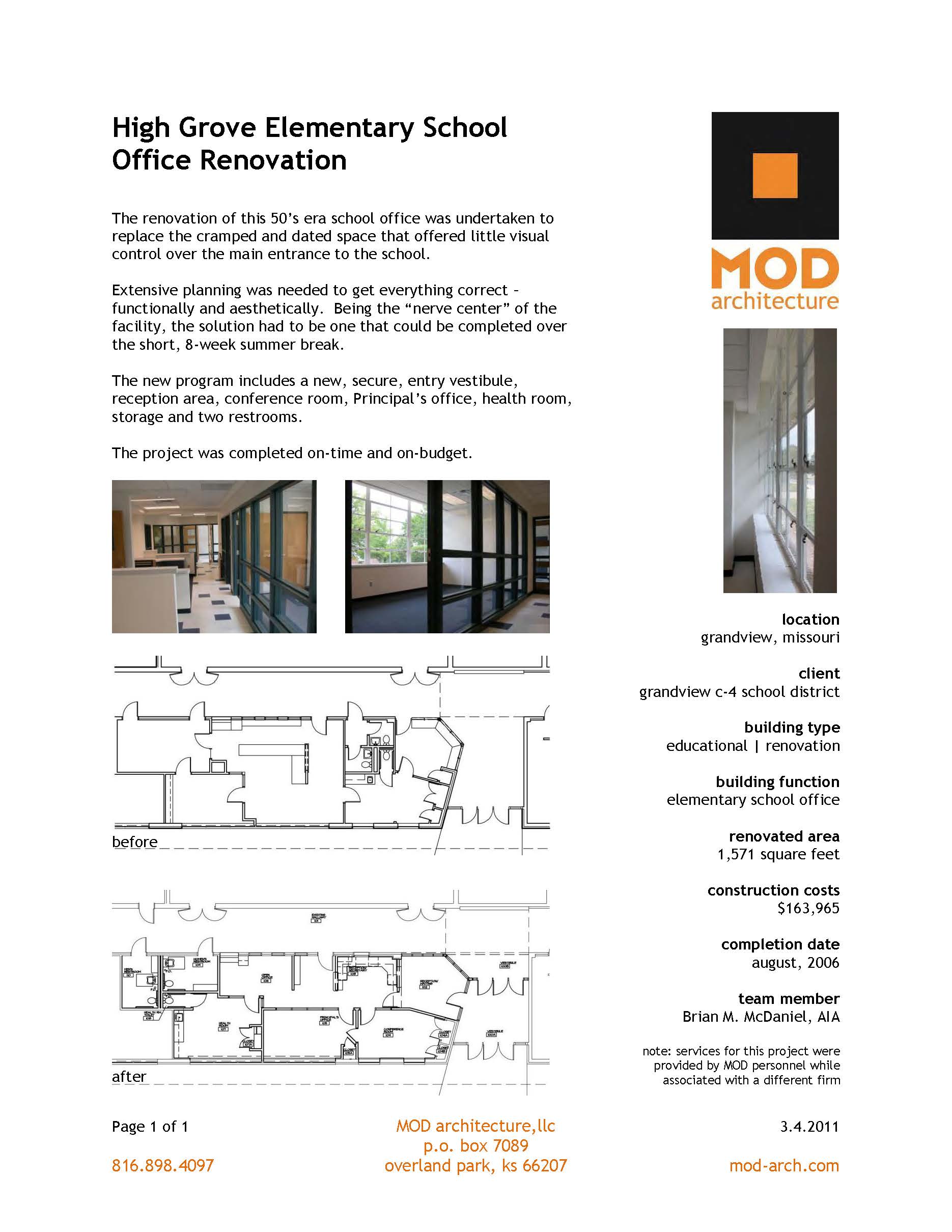 Below are a sampling of summary sheets of various projects MOD has been involved with over the years