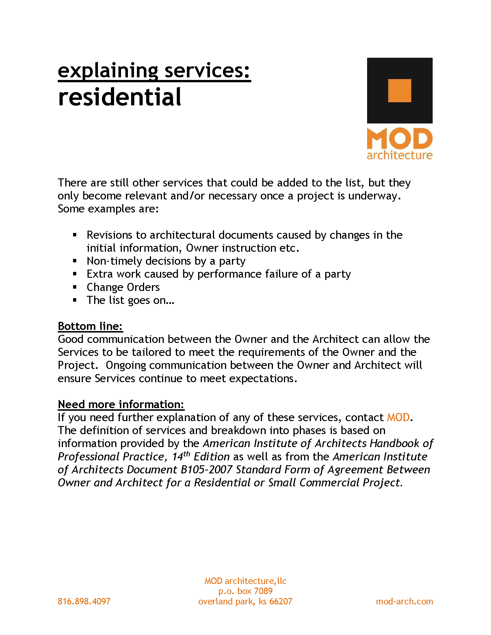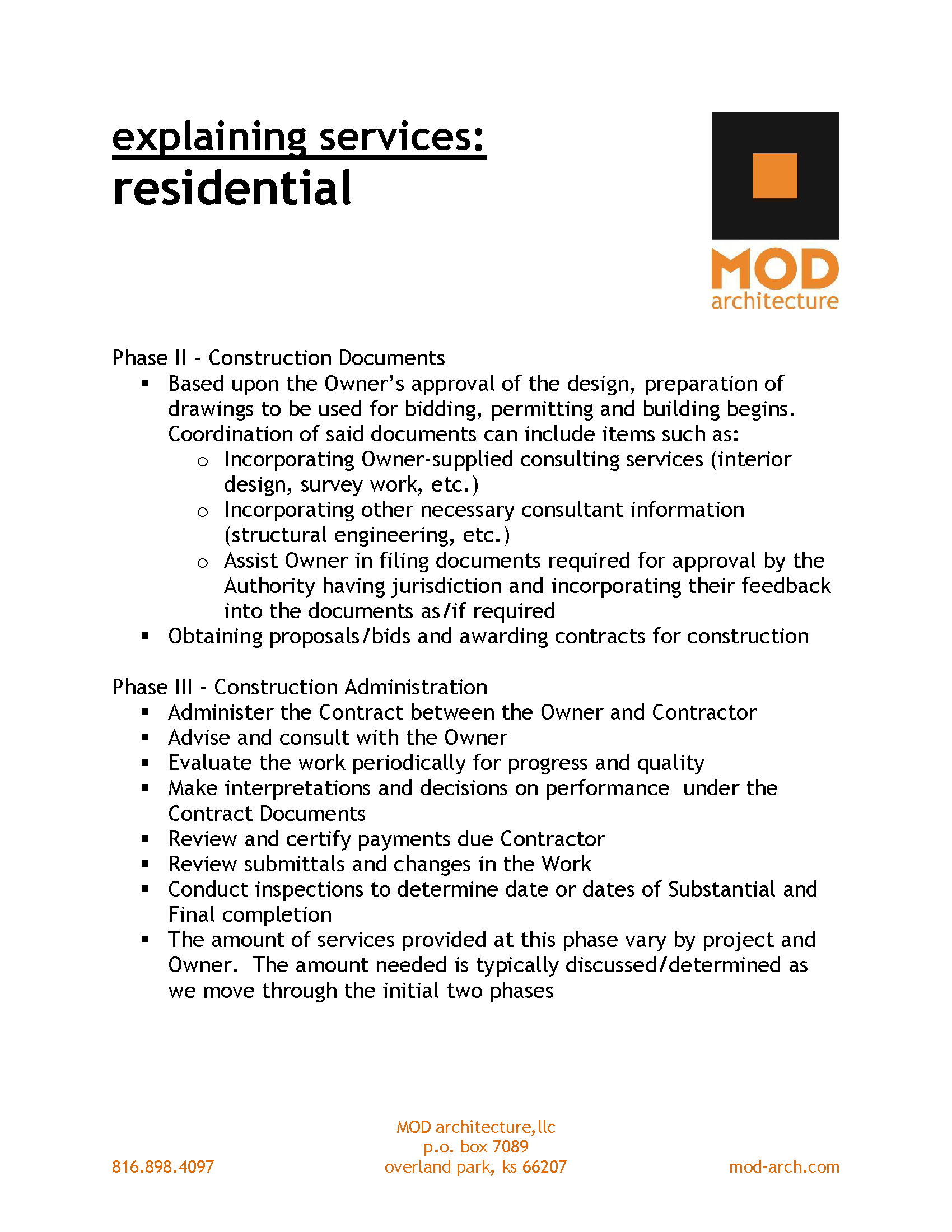 What is needed on each project is some type of structured approach that allows for the exploration of ideas and a process for bringing those ideas into reality. Click below on the images to learn a bit more about MOD Architecture's personal approach to Residential Services.