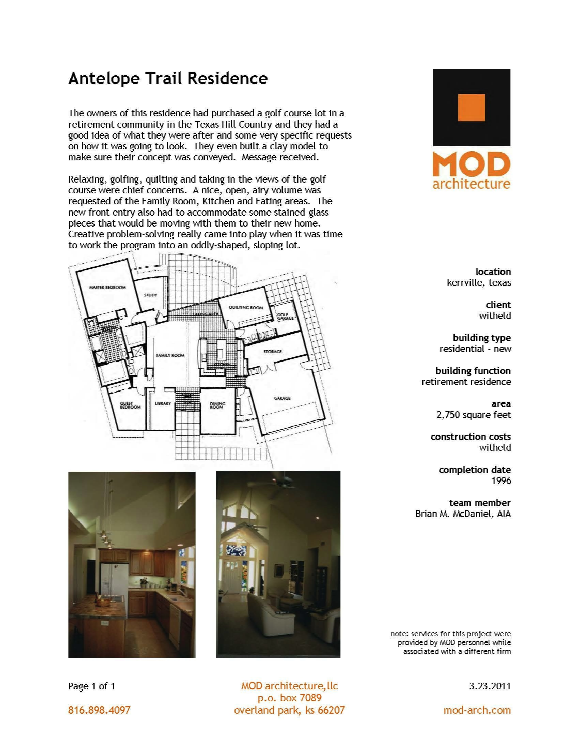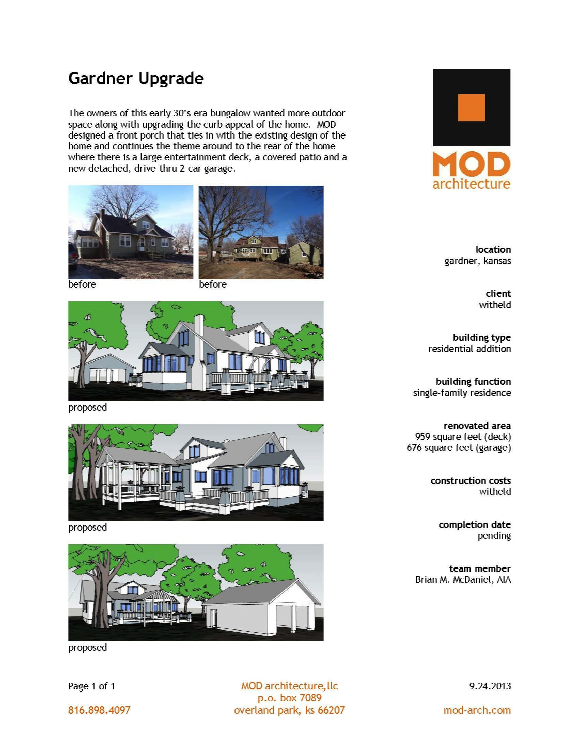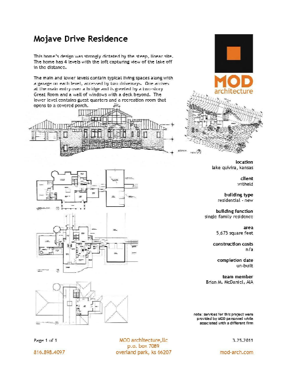 Providing architectural services to residential clients has always been a fun and creative pursuit. Over the years, opportunities have presented themselves to work on a wide variety of residential projects, from simple interior renovations, additions and "facelifts" to brand new residences. Some clients just wanted more space - in their current home or a new one. Some wanted to modernize what they had to fit with their current - and future - lifestyles. Some wanted retirement or vacation get-aways. Others have said "get creative and surprise me". Contact MOD today and let's talk about your needs...and wants.
